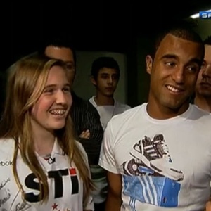 A jovem Millena Pscheidt, de apenas 14 anos, finalmente pôde torcer pelo São Paulo e tietar Lucas à vontade. Levada pelo Sportv ao Morumbi no último fim de semana, ela vestiu orgulhosa a camisa que ganhou do ídolo, que reviu após o susto da semana passada em Curitiba.
